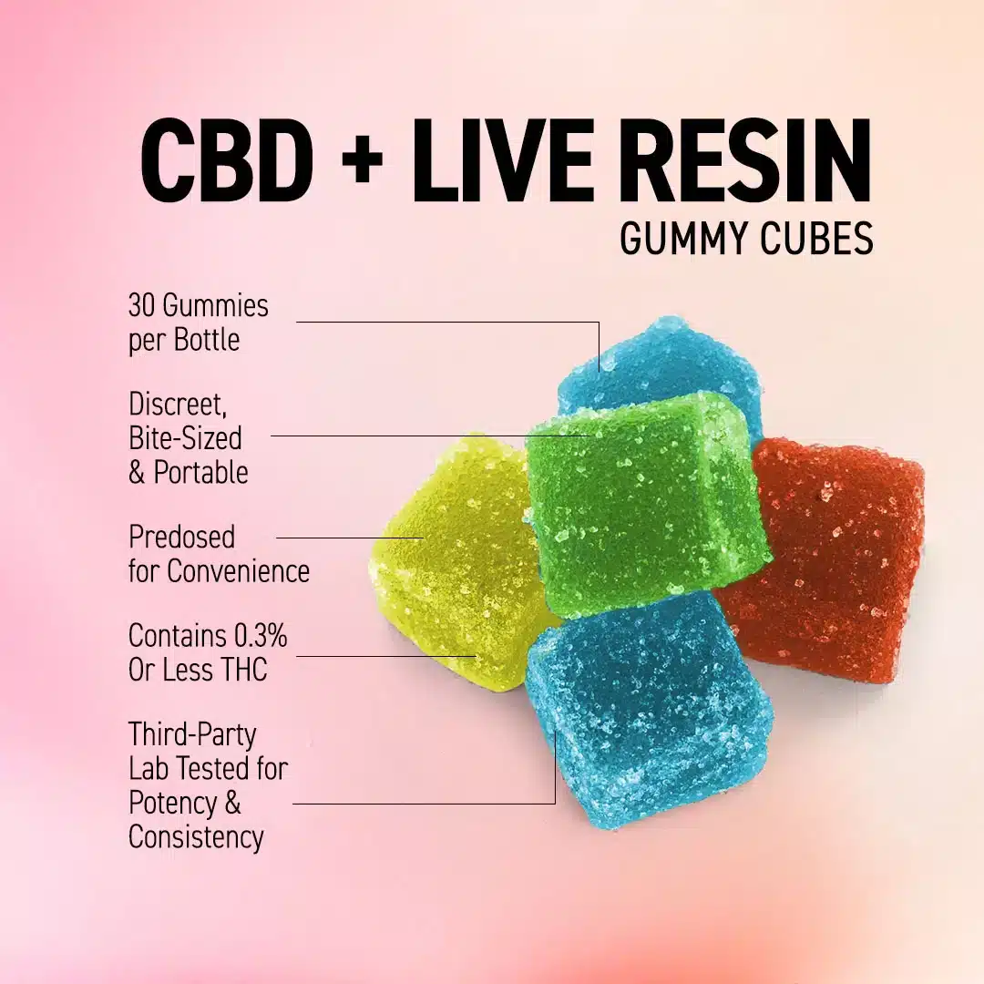 - Take 1 (one) gummy daily or as needed. Live Resin hits strongly, so if it’s new to you, start with a half gummy, wait for it to kick in, then slowly increase the amount until you’re feeling the full, satisfying effects.