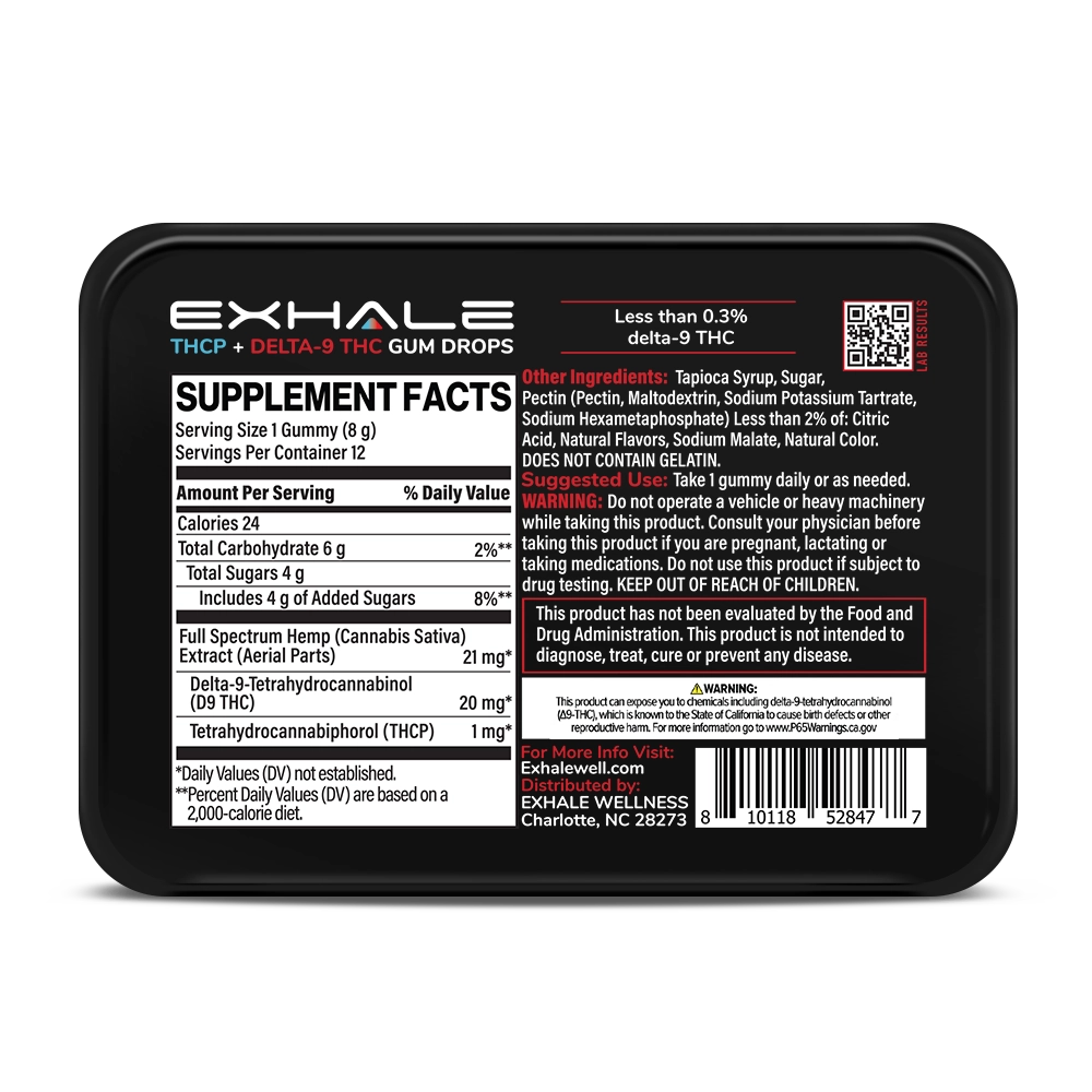 12 Gum Drops per Tin (240 mg Delta 9 THC + 12 mg THCp = 252 mg Total Cannabinoids)